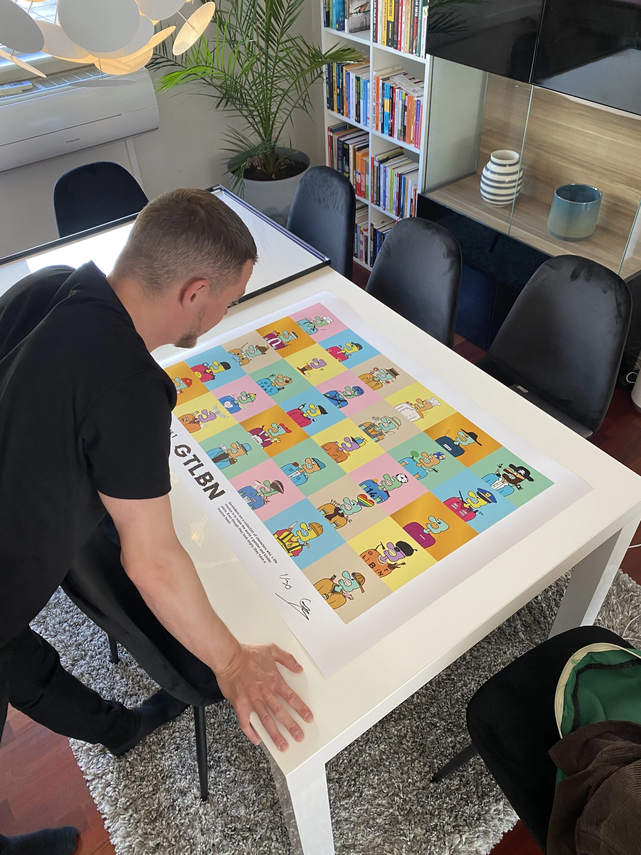 Vi kjører rett og slett et symbolsk opplag på 30 stk, ett for hver av de 30 første GentleBensa. Størrelse på dette er 100x70 cm. (Vanlig størrelse på GentleBens er 50x70 cm)